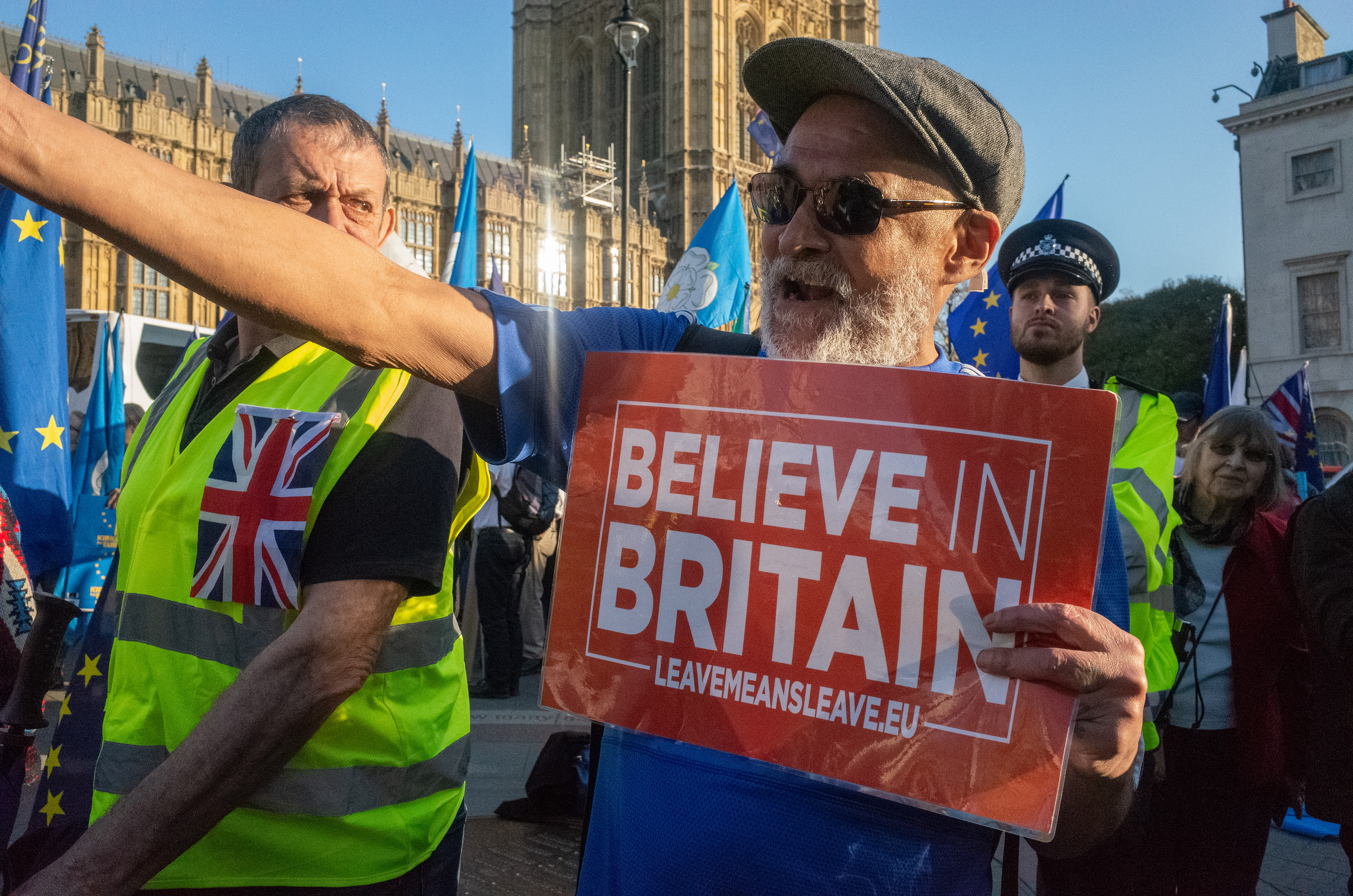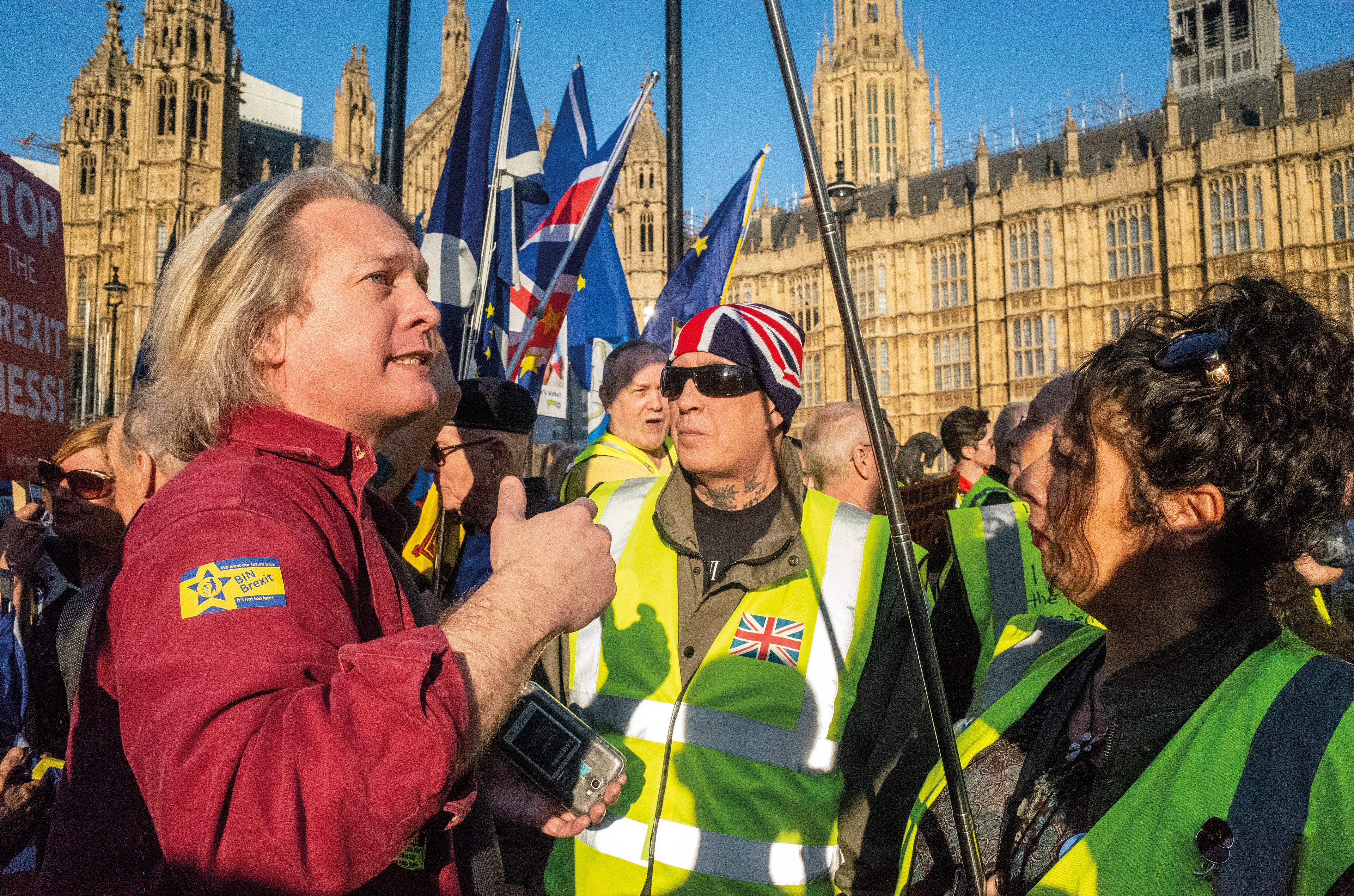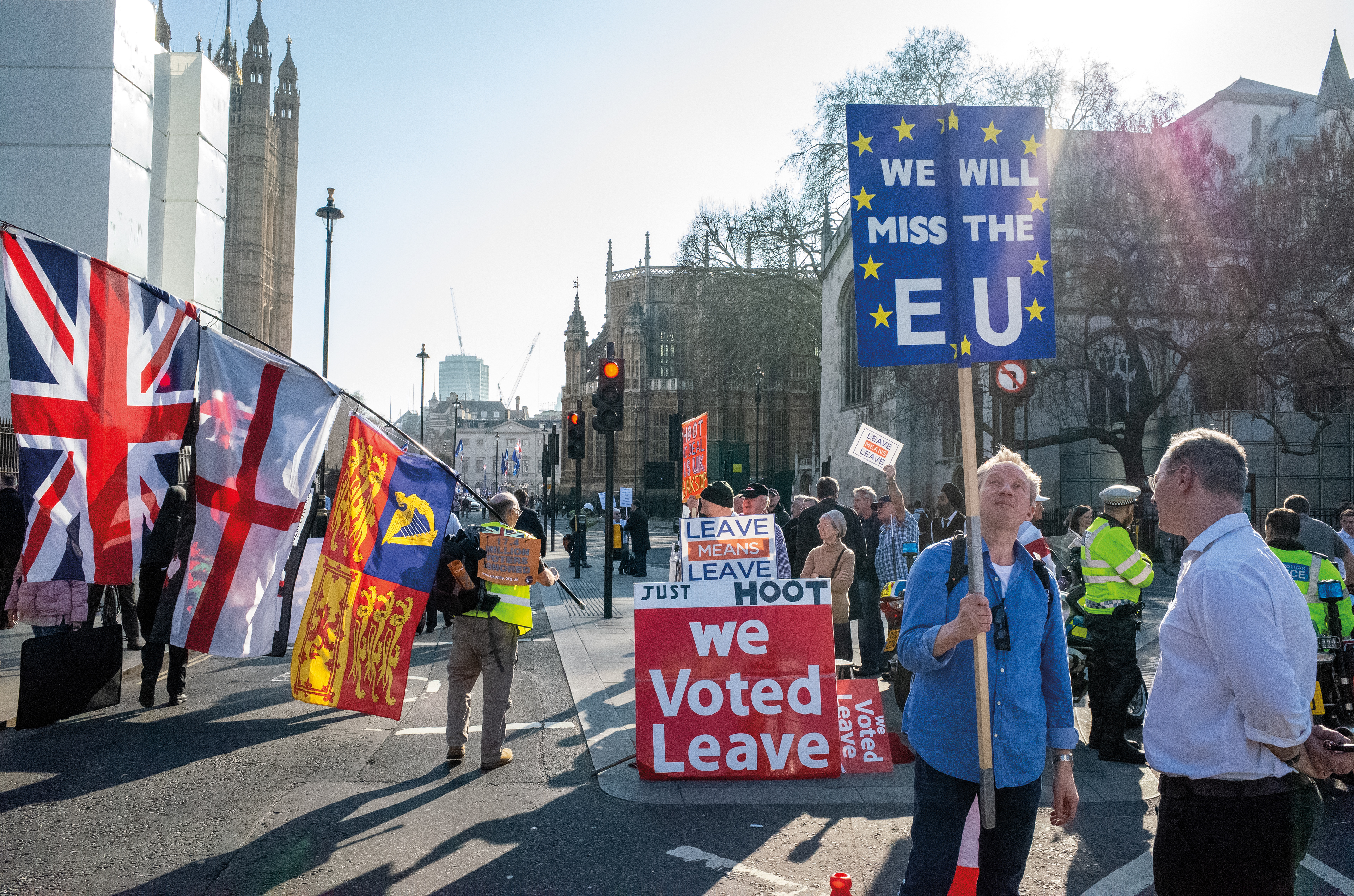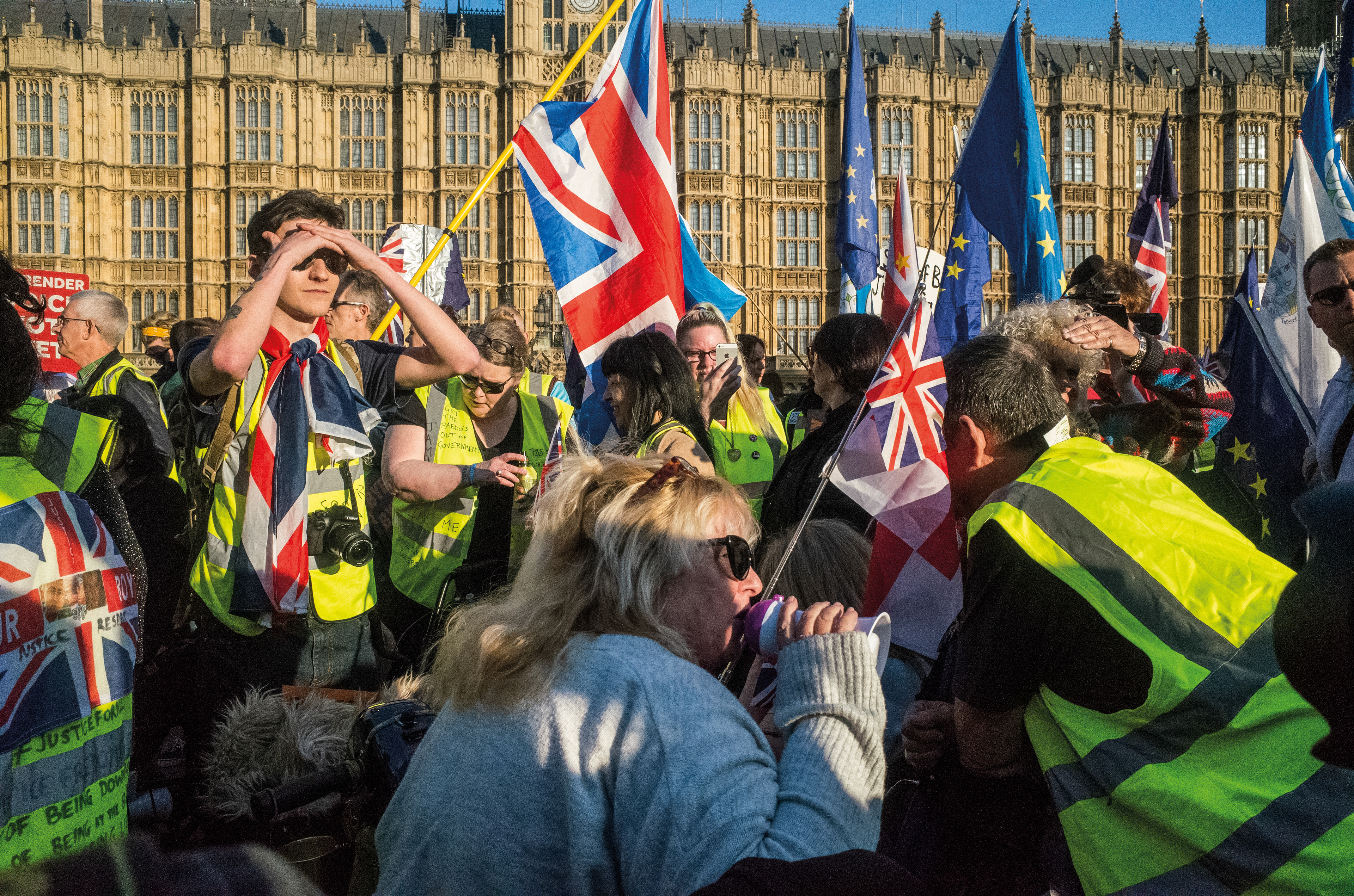 A series of photographs documenting the Leave vs Remain Brexit protests, in and around Westminster - London, 2019.