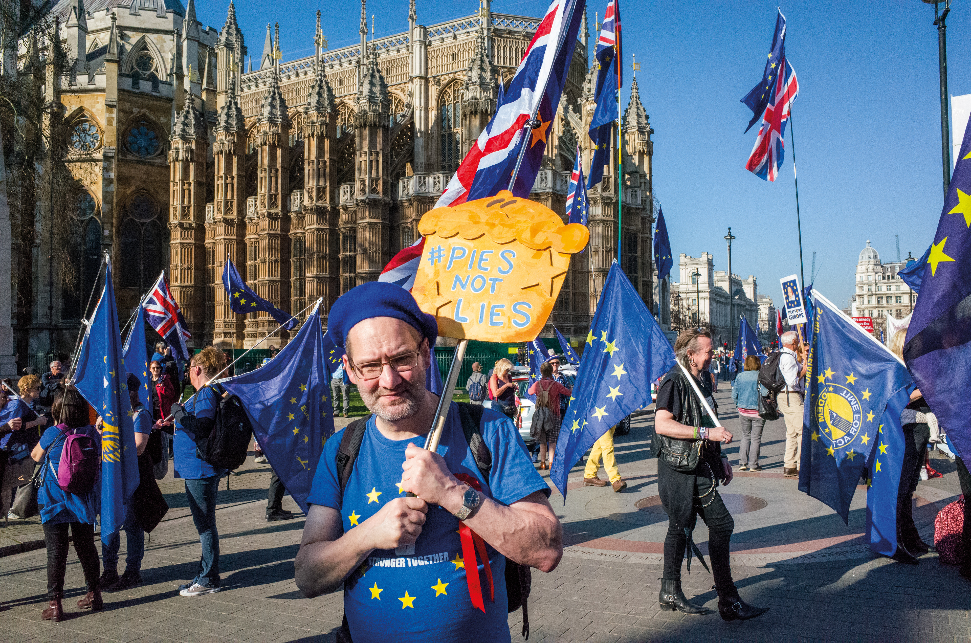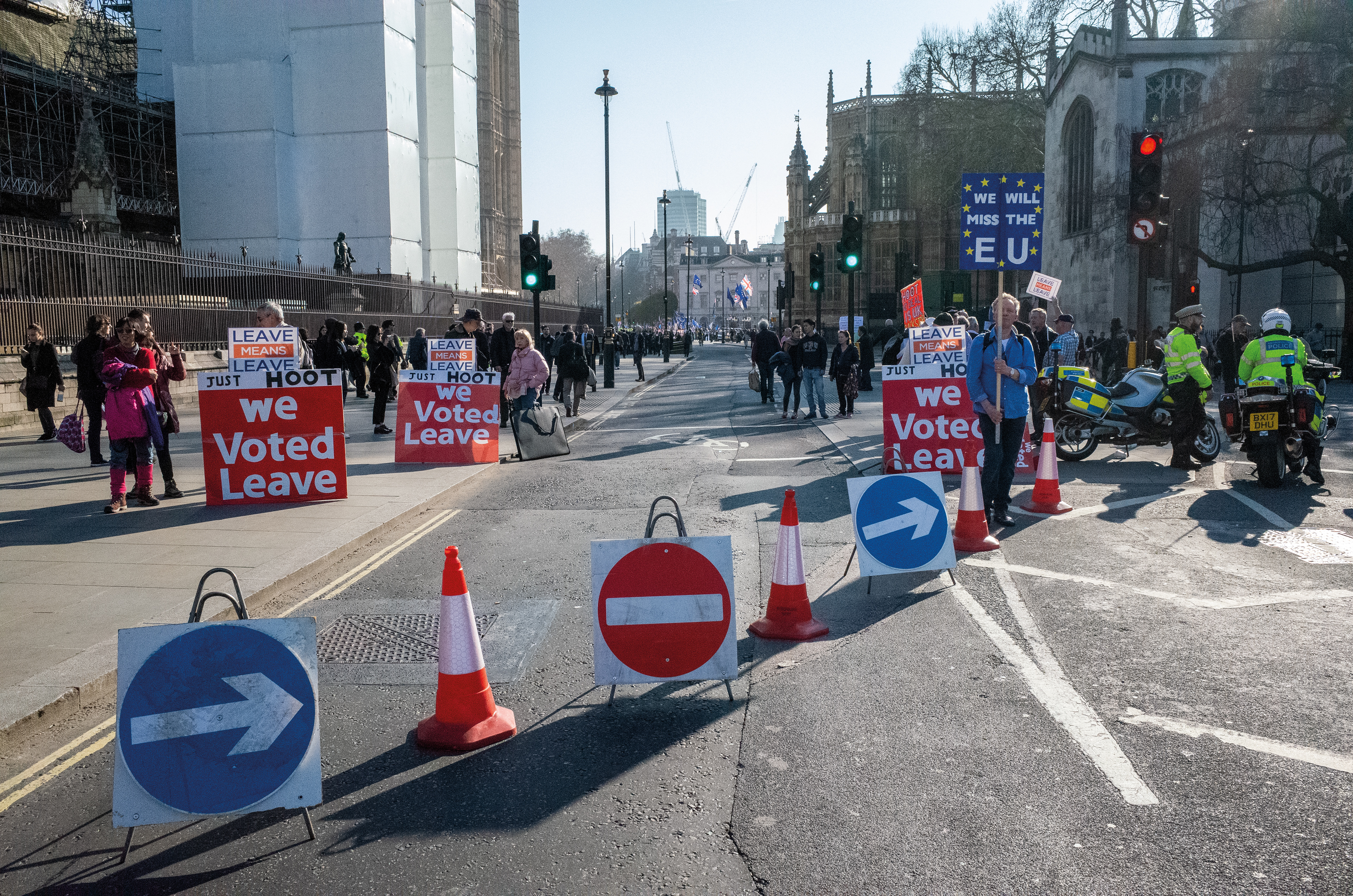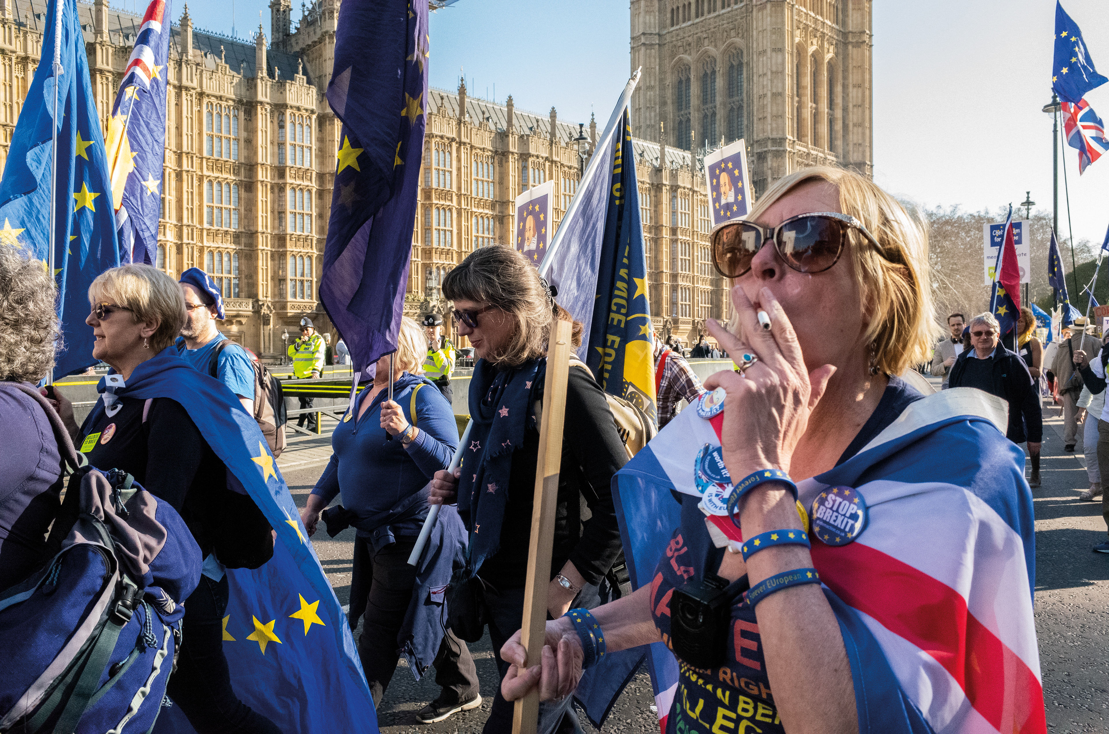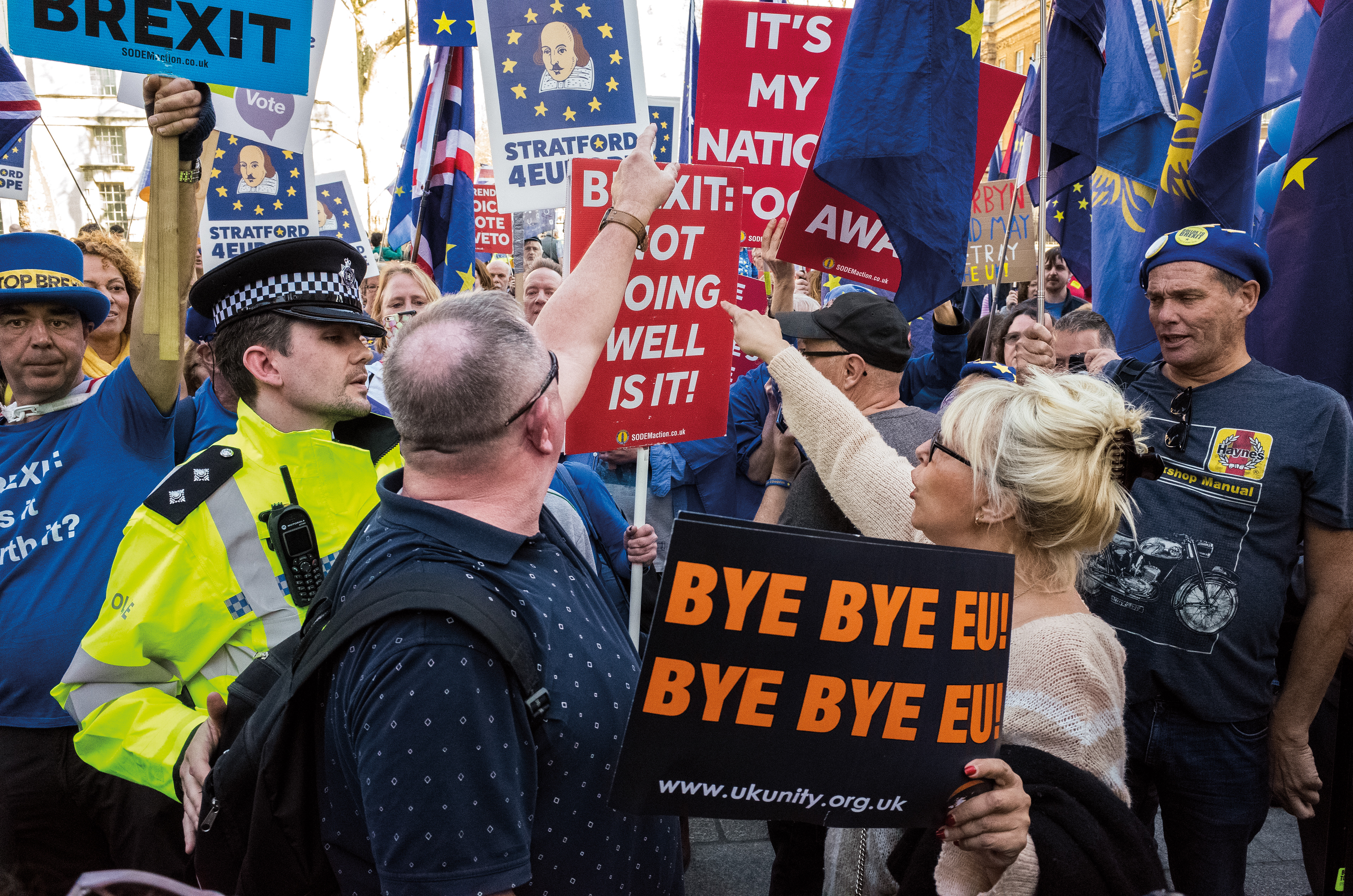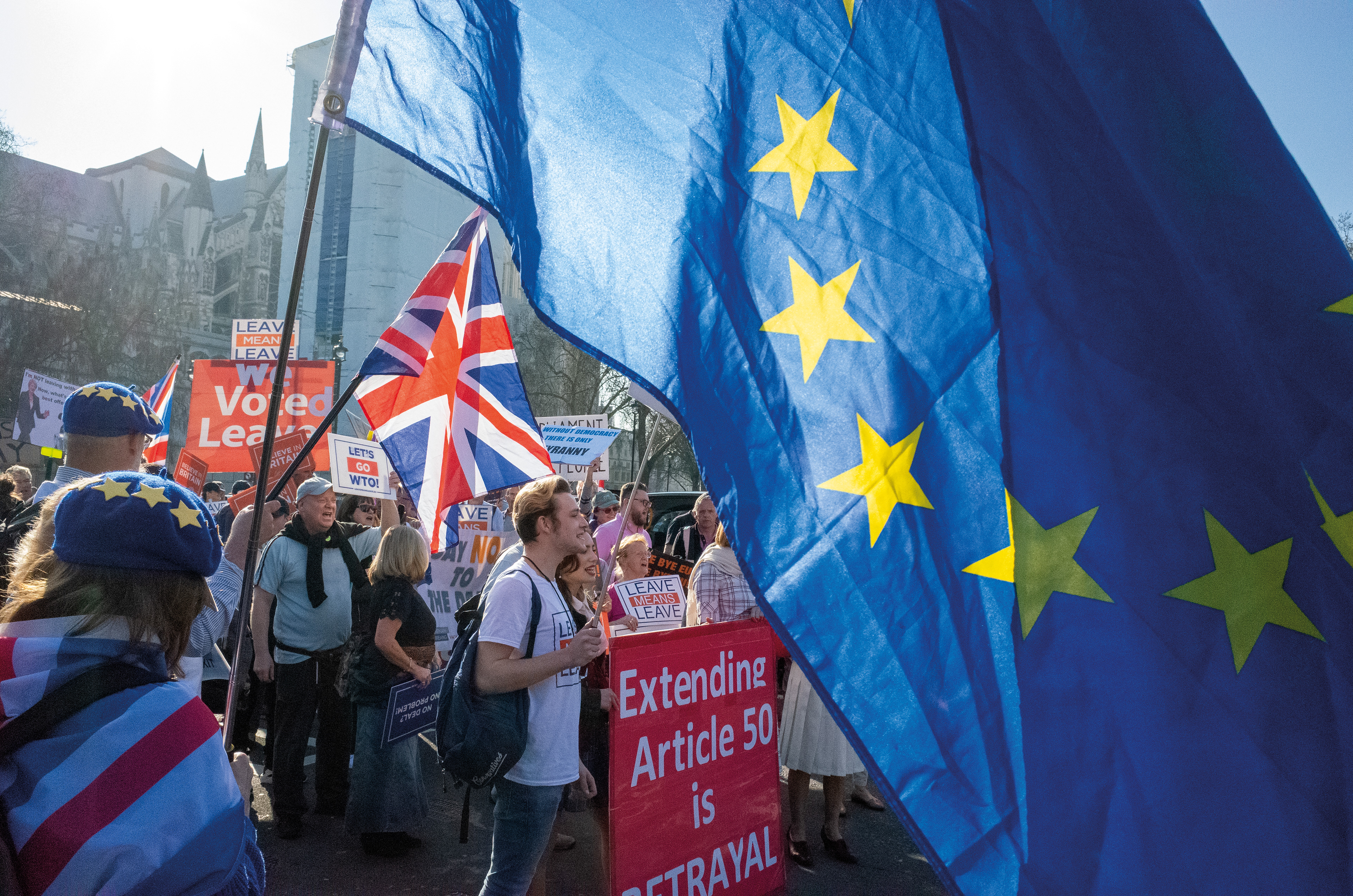 A series of photographs documenting the Leave vs Remain Brexit protests, in and around Westminster - London, 2019.